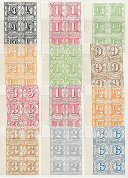Amtliche Neudrucke von 1903, 33 verschiedene Werte je in Rand-Sechserblöcken, die nicht mehr häufig sind, da die Einheiten meistens aufgeteilt wurden. Mi. 1188,- lose ++