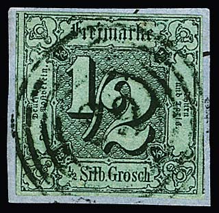 1/2 Sgr. schw./grau- und bläulichgrün, zwei überrandige Kabinettstücke (teils Nebenmarken), je Fotoexp. Gärtner