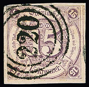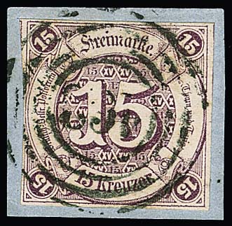 15 Kr. purpur, breit- bis überrandig, auf Kabinettbriefstück mit NS "163" (Worms), sign. Pfenninger, Decker
