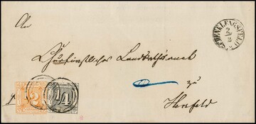 "64" zart nebst K1 "Schenklengsfeld" auf Brief mit 1/4 und 1/2 Sgr., Feuser + 1000,-