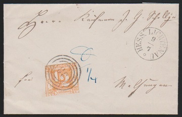 "38" nebst K1 "Hess. Lichtenau" klar auf Briefchen mit üblich geschnittener 1/2 Sgr.