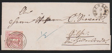 "53" nebst K1 "Oberaula" sehr klar auf kleinem Briefchen mit 1 Sgr. rot (unbed. Spalt)