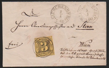 "57" nebst zweifachem K1 "Rauschenberg" auf Neujahrscouvert 3 Sgr.