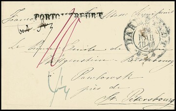 "Darmstadt", K2 vom 26.3.1849, nebst L1 "Porto v. Erfurt", auf Couvert mit Inhalt via Berlin nach St. Petersburg