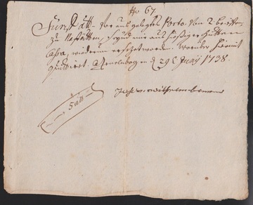 "Catzenelnbogen", 1738, zwei versch. hs. Botenlohnquittungen, u.a. vom "Bott von Nastett"