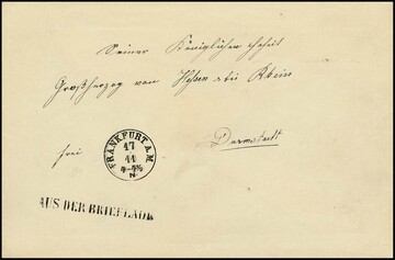 "Frankfurt a.M.", (1860), K1 und seltener L1 "Aus der Brieflade" auf dekor. Couvert an "seine königliche Hoheit Großherzog von Hessen" in Darmstadt