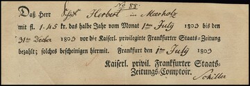 "Frankfurt", 1766-1808, elf Exemplare der "Frankfurter (kayserl. Reichs-) Ober-Post-Amts-Zeitung", sowie ein Ortsdruck-Zeitungsschein 1803 ("Kaiserl. privil. Frankfurter Staats-Zeitungs-Comptoir")