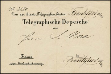 "Frankfurt", 1856, vollständiges Telegramm (Couvert mit Inhalt) von der "Staats-Telegraphen-Station"