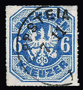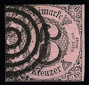 "Frankfurt", der nur kurzzeitig verwendete stumme Vierring-Stempel klar auf 9 Kr. (Bugspur)