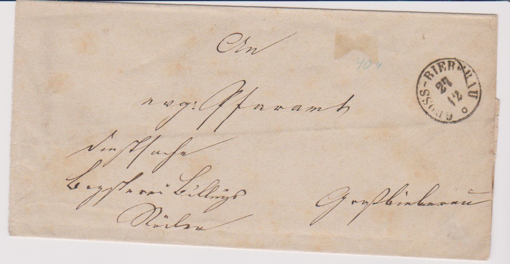 "Gross-Bieberau", seltener K1 auf etwas unfrischem Brief (1867)