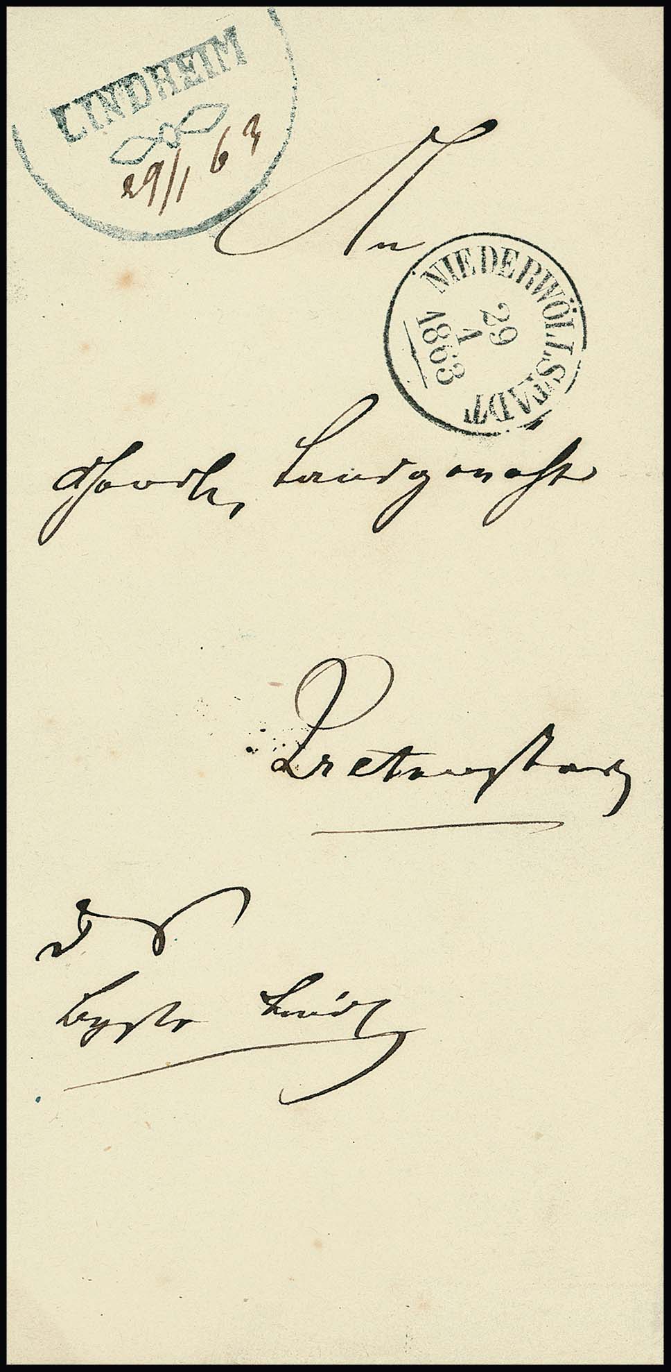 "Lindheim", seltener Postablage-Halbkreiser mit Zierelement (hs. "29/1 63"), nebst K1 "Niederwöllstadt", auf sauberem Brief