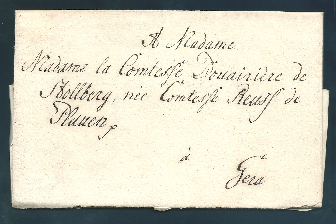 "Köstritz", 1784, "Heinrich Reuß XLIII. Graf und Herr zu Plauen", eigene Unterschrift auf dekor. Brief nach Gera