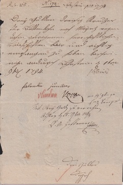 "Lahnstein", 1792, hs. Expreß-Lohnquittung für einen Brief aus Mainz vom dortigen Bottenmeister, dazu drei weitere hs. Botenlohnquittungen 1794/98