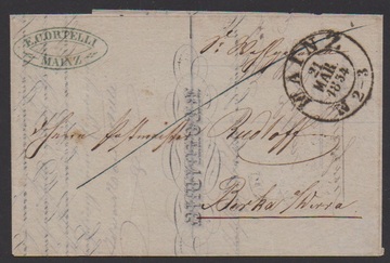 "Mainz", 1854, K2 auf portofreiem Brief an den Postmeister Rudloff in Berka/W.