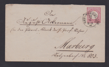 "Neu-Ysenburg", seltener nachverw. K1 klar auf Ganzsache 1 Gr. gr. Brustschild