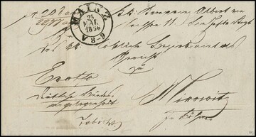"Mainz", 1856, K2 auf gef. Brief aus der Bundesfestung Mainz mit Inhalt (sächs. Truppen) nach Mirowitz in Böhmen. Attest v.d. Linden "Die mit der Thurn und Taxis-Post beförderten Militärbriefe sind sehr selten."