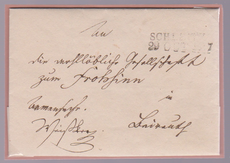 "Schleitz", L2 1837 auf seltenem portofreiem Brief des Hilfskomitees, Armensache nach Unglück