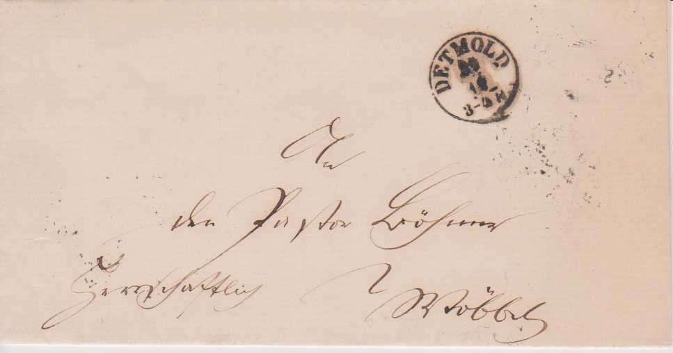"Schieder", besserer neuer Preußen-Grotesk-K1 klar rs. als Ankunftsstempel auf Brief 1867 aus Detmold dorthin