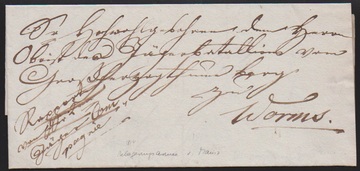 "Roxheim", 1814 (Krieg gegen Napoleon), seltener Feldpost-Kurierbrief (Belagerung von Mainz) mit Inhalt nach Worms