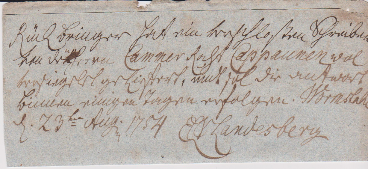 "Wormsthal", 1754, frühe handschriftliche Recepisse für ein Schreiben aus Hannover