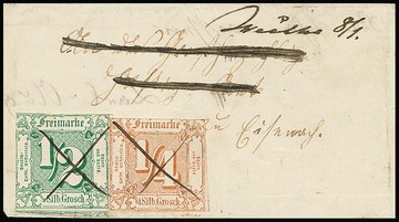 "Wutha", seltene handschriftliche Eisenbahn-Stations-Aufgabe, Marken mit Federkreuz entwertet, auf Briefchen mit 1/4 (kl. Eckfehler) und 1/2 Sgr., Fotoexp. Sem