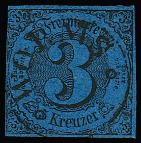 "Worms", seltener aptierter Versuchs-K1 klar auf Prachtstück 3 Kr. schw./blau
