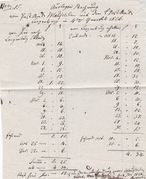 "Blaufelden", "Künzelsau", 1826, zwei hs. "Auslagen-Rechnungen" der dortigen Postämter (für das Postamt Langenburg)
