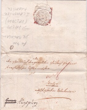 "Balingen", 1788, "DE BALINGEN", farbschwacher L1 auf Brief (unbed. Bräune) aus Geislingen "franco Augsburg" ("franco" gestrichen) nach Valpo/Kroatien, für diese Zeit sehr ungewöhnliche Destination!