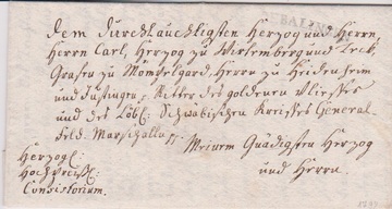 "Balingen", 1792, sauberer L1 "DE BALINGEN" auf dekor. Brief an Herzog Carl von Württemberg (Consistorium)