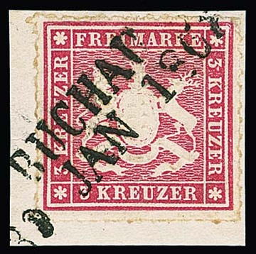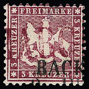 "Backnang", schwarzer L2 und lilaroter L1 "Chargé" als kuriose Doppelentwertung auf 3 Kr. (m.E. lilarot, kl. Mgl.), Fotoexp. Irtenkauf