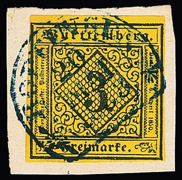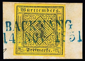 "Backnang", blauer L2 (vom 14. Nov. 1851!) voll auf leicht getönten Prachtbriefstück 3 Kr. schw./gelb, Fotoexp. Irtenkauf "einwandfrei"