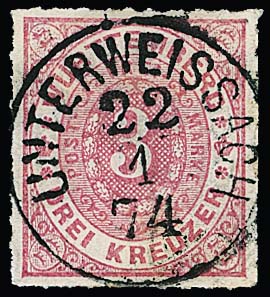 3 Kr. rosa, Luxusstück mit seltenem K1 "Unterweissach" zentrisch