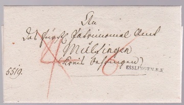 "Esslingen R. 3.", L1 gestochen klar auf Luxusbrief 1808 mit vorgedrucktem Inhalt