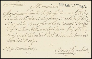 "Cannstatt", (1787), klarer L1 "DE CANSTATT" auf Reco-Luxuscouvert