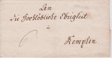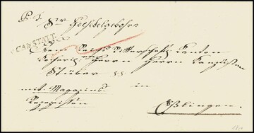"Ebingen", (1803), der seltene erste L1 "v. EBINGEN" auf Briefhülle, Feuser 350,-