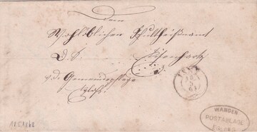 "Entringen", Fraktur-L1 der Postablage klar auf Brief (nebst K2 "Tübingen"), sowie Brief 1868 mit Postablage "Wangen-Eglofs" (nebst K2 "Isny")