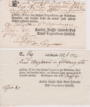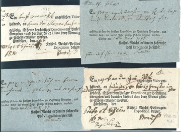 "Geislingen", 1775-1793, drei verschiedene Reichspostscheine