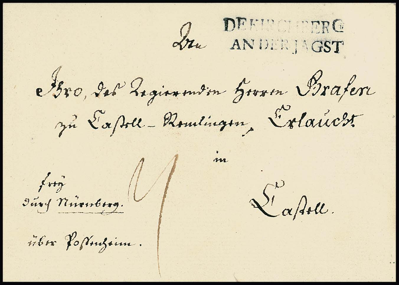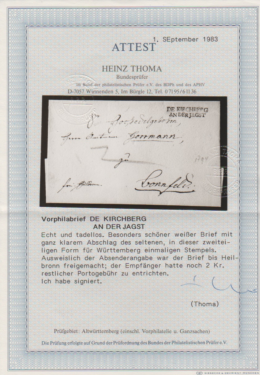 "Kirchberg", der erste L2 "DE KIRCHBERG AN DER JAGST" klar auf Brief 1797 mit Inhalt, sign. Thoma mit Befund ("seltener Stempel"), Feuser + 800,-