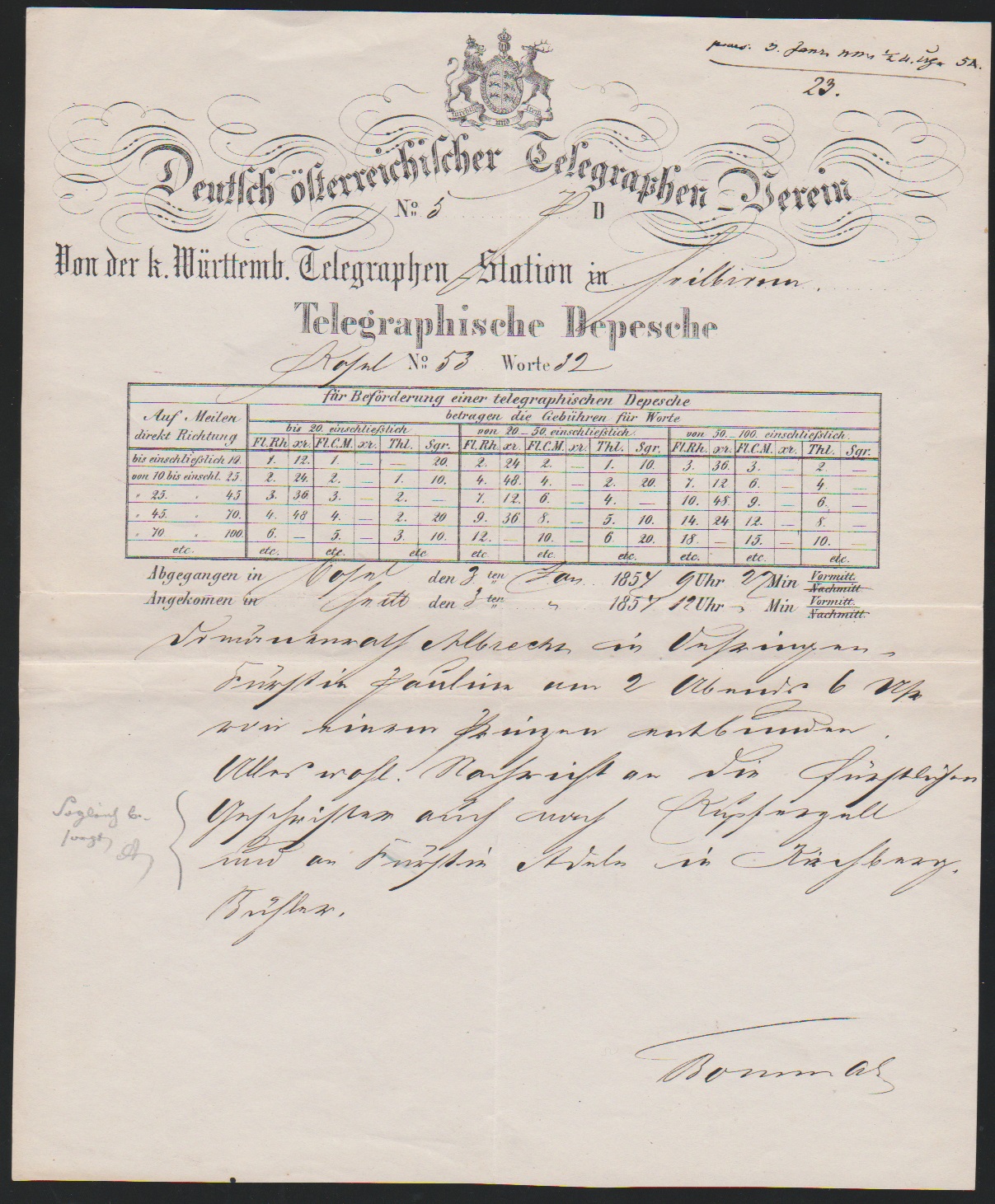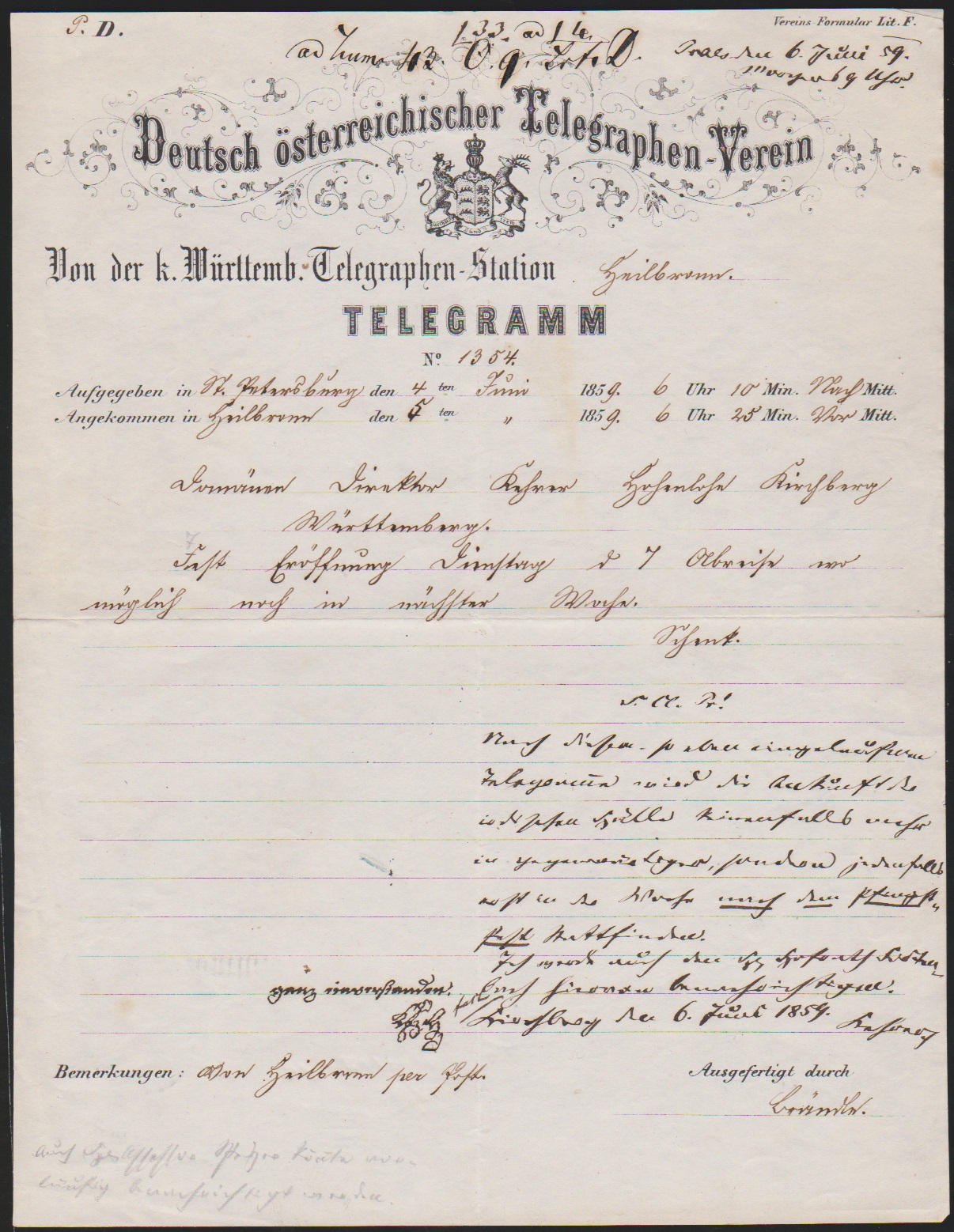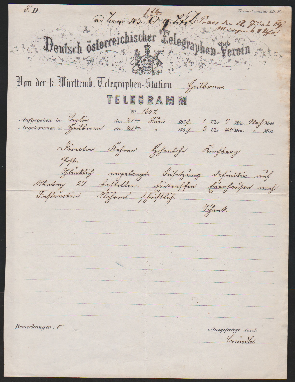 "Heilbronn", 1854-59, drei Telegramme "Deutsch-Österreichischer Telegraphen-Verein" (plus ein weiteres mit Mängeln und unkpl.)