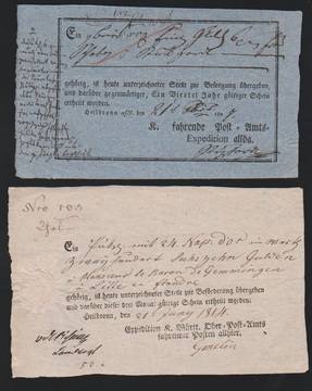 "Heilbronn", 1778-1805, 28 Ortsdruck-Postscheine der Reichspost, und acht weitere frühe Ortsdruck-Postscheine 1806-14 (dabei versch., teils seltene Formulare)