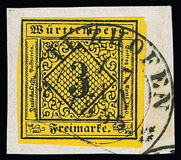 "Ilzhofen", seltener schwarzer Stb. klar auf Kabinettbriefstück 3 Kr. schwarz auf gelbem Seidenpapier, Fotoexp. Irtenkauf