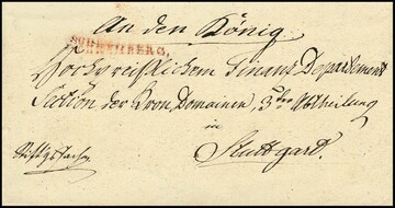 "Schramberg", 1816, L1 in rot klar, aber etwas verkantet, auf Dienstbrief mit kpl. Inhalt nach Stuttgart, Feuser 3225-1, 1500,-