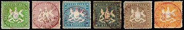 Kreuzer durchstochen inkl. 18 Kr. orange und 7 Kr. blau, einheitlich mit rotviolettem K1 "Stuttgart", teils kl. Mgl. Mi. 1428,-