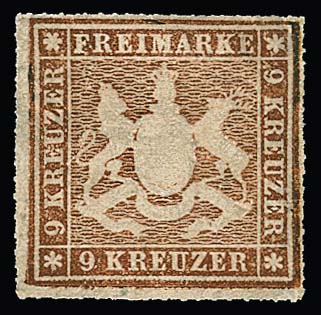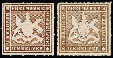9 Kr. rötlich- und fahlbraun je ungebraucht, erstere repariert mit Neugummi, letztere Prachtstück mit Gummiteilen (Attest Heinrich), seltene Marken. Mi. (1500,-) bzw. 2000,-