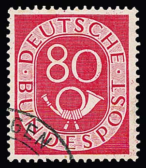 80 Pfg. Posthorn mit Plattenfehler "farbiges Dreieck im Marken-Oberrand" gestempelt, Fotoexp. A. Schlegel. Mi. 700,-