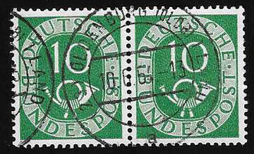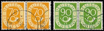 Posthorn, ohne 25 und 80 Pfg., je in gestempelten waagerechten Bedarfspaaren (teils übliche Zähnungsunregelmäßigkeiten), zwei Befunde Schlegel. Mi. 2125,-