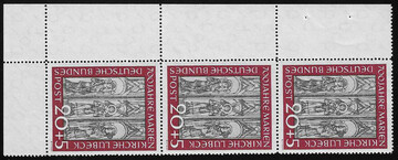 Marienkirche einheitlich in postfrischen Dreierstreifen aus der linken unteren Bogenecke, eine 20 Pfg. ausgabetypisch ein kurzer Zahn, Mi. 660,- +