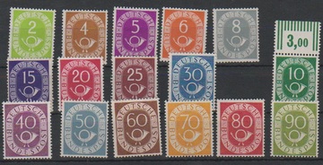 Posthorn kpl., bis 25 Pfg. postfrisch, danach Neugummi und teilweise nachgezähnt