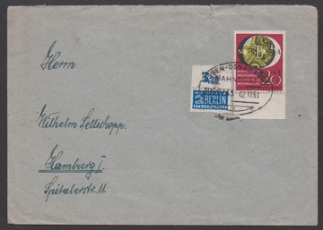 20 + 3 Pfg. NABA vom Oberrand (mit hs. korrigiertem Reihenwertzähler) bzw. vom Unterrand, auf zwei Bedarfsbriefen, Mi. 180,- +
