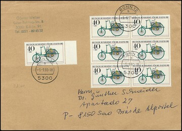 Jahrgang 1977, sieben portogerechte Belege mit ungewöhnlichen bzw. hohen Mehrfach-Frankaturen seltener Wertstufen: Nr. 900 per drei, 901 per fünf, 907 (per drei und vier), 910(5), sowie 911 zweimal per vier
